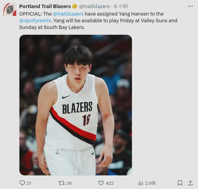 終于,開(kāi)拓者在今天官宣,再度將楊瀚森下放到NBA發(fā)展聯(lián)盟的撕裂之城混音隊(duì)。